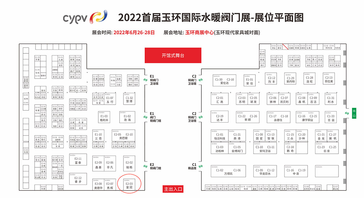 2022首屆玉環(huán)閥門(mén)展將于6月26日到6月28日在玉環(huán)國(guó)際會(huì)展中心舉行,皇冠閥門(mén)的展會(huì)號(hào):E2-03, 詳情見(jiàn)展位圖,由于疫情原因,展會(huì)經(jīng)多次延期,歡迎新來(lái)客戶光臨,同時(shí)參展期間,關(guān)注當(dāng)?shù)胤酪哒?,做好防疫措施?/p>