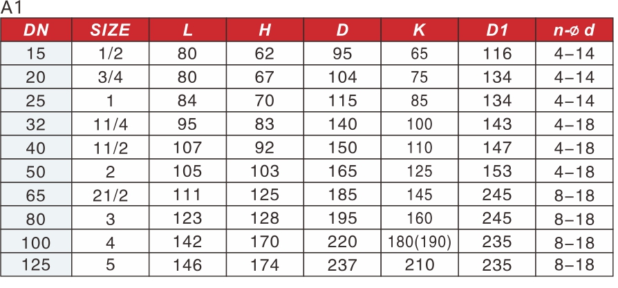 產(chǎn)品尺寸表:
