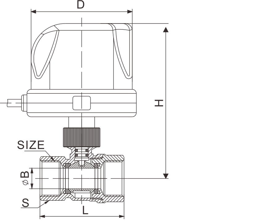 本系列是自檢智能型電動(dòng)球閥。適用于采暖系統(tǒng)和空調(diào)風(fēng)機(jī)盤管系統(tǒng)中的通斷控制,由球閥與執(zhí)行器組成,執(zhí)行器帶動(dòng)閥球作旋轉(zhuǎn)90。運(yùn)動(dòng)。執(zhí)行器內(nèi)部采用同步電機(jī)驅(qū)動(dòng),內(nèi)置限位觸點(diǎn),能使閥[ ]在全開或全關(guān)時(shí)斷電,動(dòng)作穩(wěn)定。外部采用LED燈指示,紅綠燈切換來判斷閥門是否正常開啟或關(guān)閉,達(dá)到自檢功效。(當(dāng)閥門全開時(shí),紅燈滅綠燈亮。當(dāng)閥門全關(guān)時(shí),綠燈滅紅燈亮。如果閥門未完全打開或關(guān)閉時(shí),紅燈與綠燈同時(shí)亮。檢修人員只要一看燈,就能知道問題所在。更適合在窄小、黑暗、不方便檢修的地方安裝使用。如:中央空調(diào)末端水路控制處安裝使用)。
